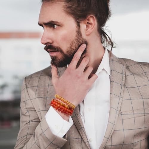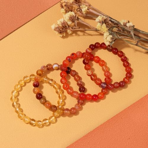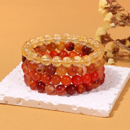 • Bracelets Set for Women: 4PCS 8mm natural stone beaded bracelets for women men.Bracelets made of different materials have different styles and together make up these Red and Yellow bracelets set.You can wear it alone or layer it up to add some color to your outfits.