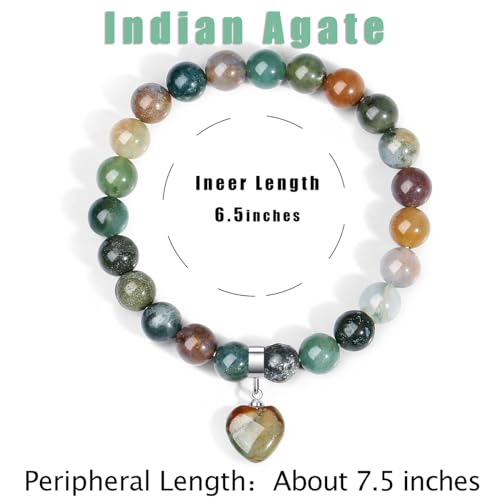 • [Stretchable Bracelet]: Designed with adjustable sizing, featuring a sturdy elastic band, Indian Agate bracelet ensures a comfortable fit for different wrist sizes. Peripheral 7.5 inches length 8 mm beads, and a heart-shaped crystal within.