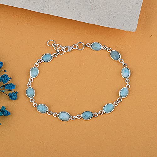 Blue Larimar Gemstone 925 Sterling Silver Bracelet for Women 7.5” Dominican Republic Larimar Jewelry Gift 5