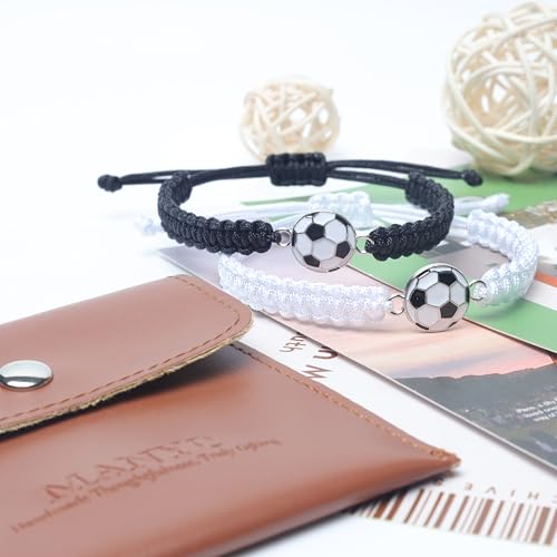 MANYC 2pcs Braided Sport Bracelets, Sports Accessories Adjustable, Baseball, Volleyball, Basketball, Soccer, Football Jewelry for Fans, Ideal for Birthday or Halloween Gifts 4