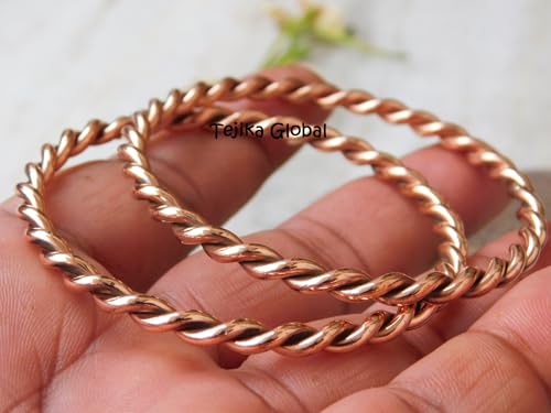 More information about Pure Copper Twisted Tensor Bangle Set 2, Solid Copper Bracelets for Men and Women, Handmade Health Jewelry