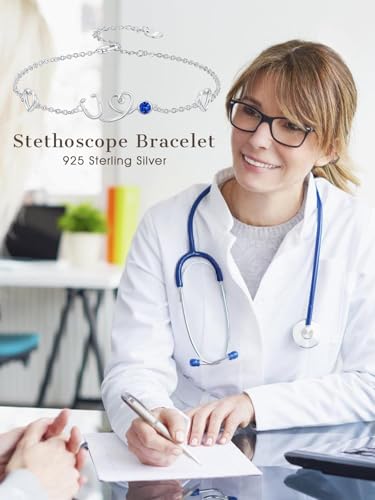 HOT ! Dorunmo Stethoscope Bracelet 925 Sterling Silver Nurse Stethoscope Bracelet with Birthstone Graduation Jewelry Gifts for Nurse Doctor Medical Student