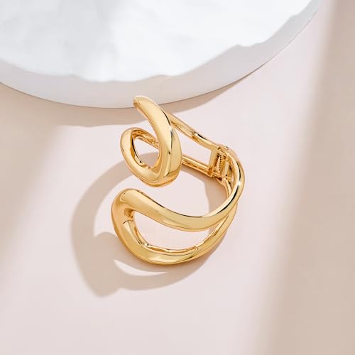 • Chunky Gold Bangle Bracelet: This chunky gold cuff bracelet for women features a stylish double layer waterdrop design, adding an eye-catching touch to your wrist—perfect for a bold, modern look