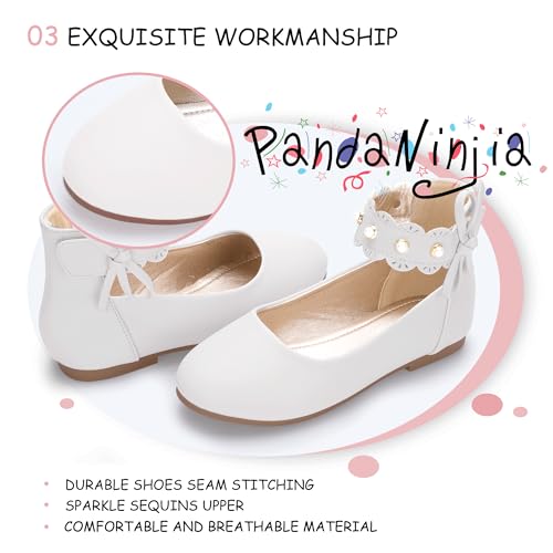 PANDANINJIA Girls Dress Shoes Flower Girl Ballet Flats Pearls Mary Jane Wedding Ankle Strap Toddler Little Kids 1