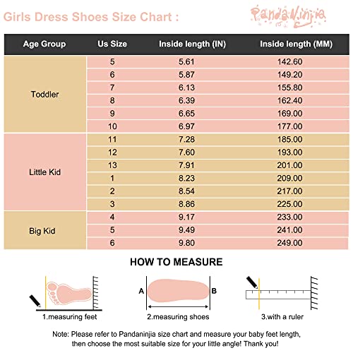 • HOW TO CHOOSE GIRLS DRESS SHOES SIZE: Our girls dress shoes are true to size. We offer our size chart in the pictures to keep that you could choose a perfect size for your little ones. Please measure your little girl's feet length and refer to our size chart to get the right size