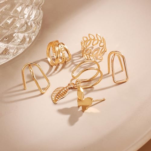 22Pcs Golden Ear Cuffs Earrings for Women Non Piercing Lightweight, Adjustable Hypoallergenic Fake Clip On Cartilage Butterfly Chain Twist Helix Leaf Wrap Earrings Set, Trendy Jewelry 6