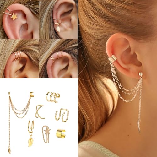 HOT ! 22Pcs Golden Ear Cuffs Earrings for Women Non Piercing Lightweight, Adjustable Hypoallergenic Fake Clip On Cartilage Butterfly Chain Twist Helix Leaf Wrap Earrings Set, Trendy Jewelry