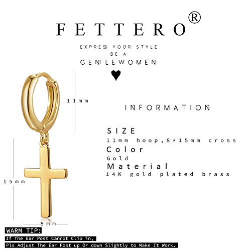 • Delicate Package: You'll get 1 pair gold cross hoop earrings in a wonderful box, signatured FETTERO, ready to be given as a gift. Light weight women earrings, suitable for all-day wear, gold huggie hoop earrings, perfect for a wide range of outfits and styles