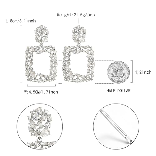 Rhinestone Crystal Geometric Earrings for Women, Statement Square Drop Dangle Chandelier Costume Jewelry 5