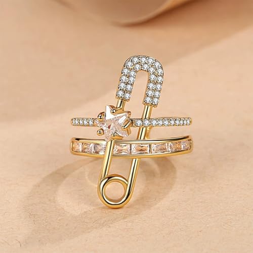 Ear Cuff Earrings for Women Safety Pin Earrings Gold Chunky Ear Cuffs Non Piercing Rhinestone Star Clip on Earring Cartilage Jewelry Statement Gift 1