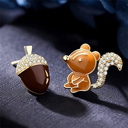 HOT ! MALOYANVE Fun Squirrel and Pine Cone Stud Earrings Asymmetrical Crystal Nut Squirrel Animal Ear Stud Earrings for Women
