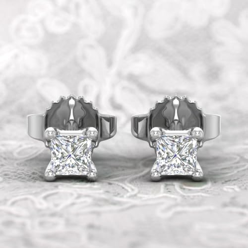 HOT ! 1/10 to 1/2 Carat Princess Cut Diamond Stud Earrings in 14K Gold (I1-I2 Clarity)