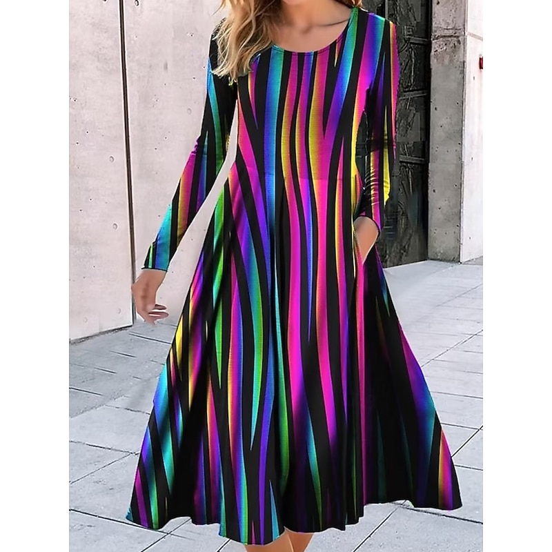 Why Choose Women's Midi Dress A Line Dress Casual Daily Regular Fit Floral Geometric Long Sleeve Crew Neck Black Red Blue Purple Spring Fall?