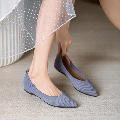 Unifizz Women's Flats Shoes Pointed Toe Knit Ballerina Ballet Comfortable Dressy Slip On Walking Flat 6