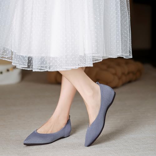 Unifizz Women's Flats Shoes Pointed Toe Knit Ballerina Ballet Comfortable Dressy Slip On Walking Flat 5