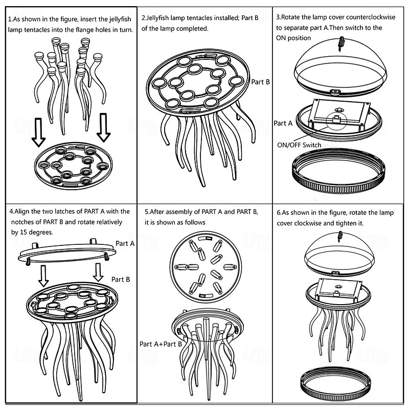1 Pc Outdoor Solar Jellyfish Lighs Garden Lights Water Float Light Diy Assembly Pool Light Pool Fountain Light Colorful Outdoor Party Atmosphere Light 13