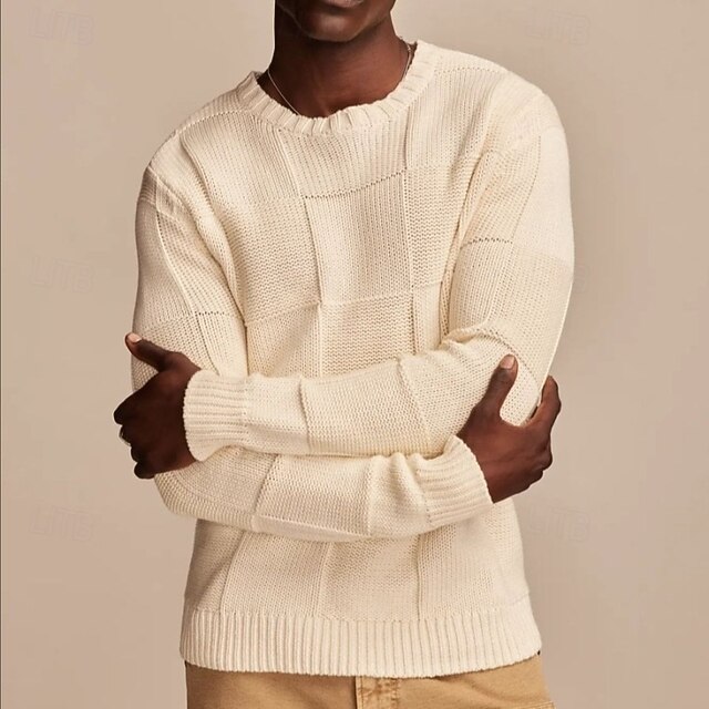 More information about Men's Sweater Pullover Sweater Jumper Ribbed Knit Regular Tops Knitted Slim Fit Plain Crew Neck Knitwear Contemporary Casual Daily Wear Clothing Apparel Spring Fall Navy Blue Brown M L XL