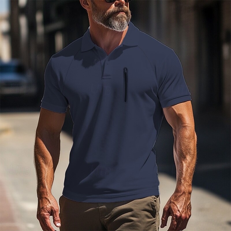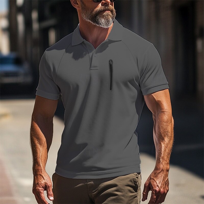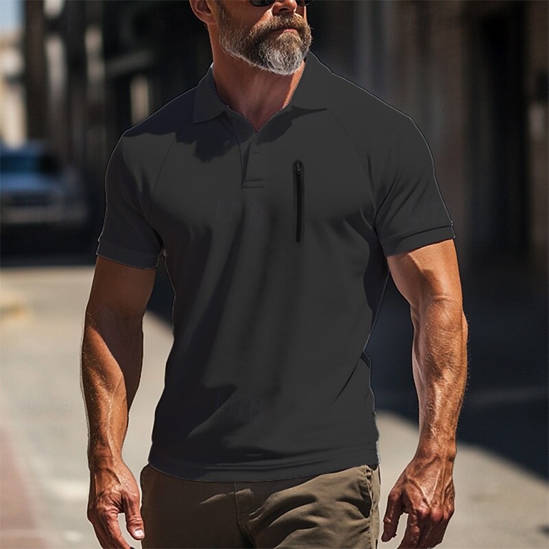 More information about Men's Polo Shirt Golf Polo Work Street Classic Short Sleeve Fashion Muscle Solid Color Zipper Quick Dry Summer Spring Fall Black Army Green Navy Blue Gray Polo Shirt
