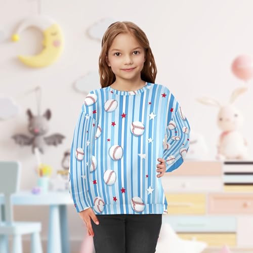 JUNZAN Blue Baseball Stripes Little Boys Pullover Hoodie Crewneck Hoodie for Boys Sports 4T 6