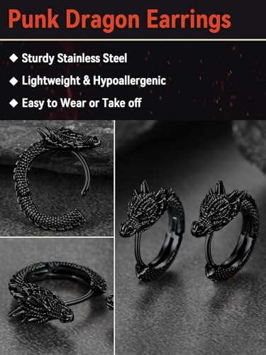 • Safety to Wear: These dragon hoop earrings are suitable for both women and men. Designed for all-day comfort, you can confidently wear them from morning to night without any discomfort