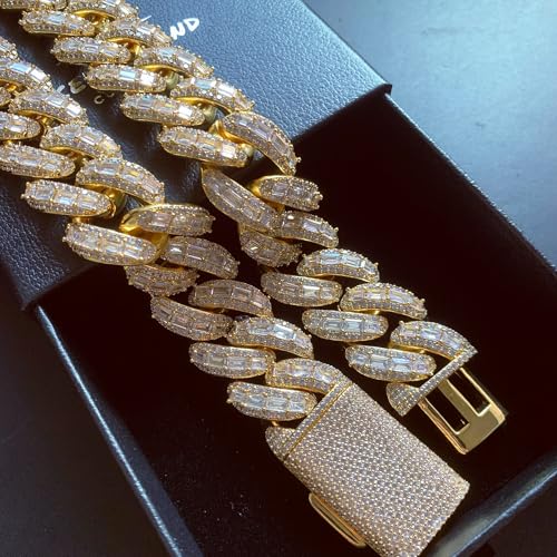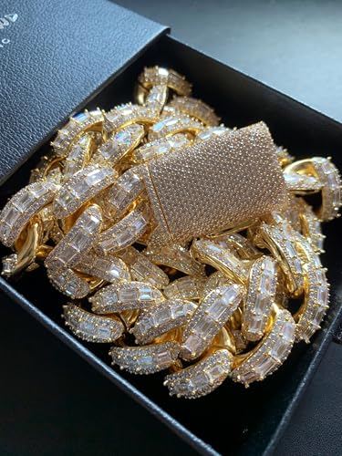 • Luxury Cuban Link Design: 25MM wide mixed-pave baguette diamond Cuban link chain that elevates the classic Miami style, designed with an exquisite icy glow for an ultimate luxury vibe