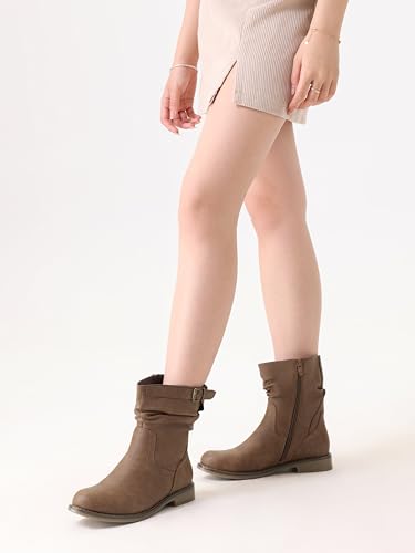 Shoe'N Tale Women's Mid Calf Boots Slouchy Round Toe Flat Low Heel Riding Boots With Side Zipper 5