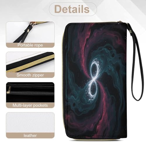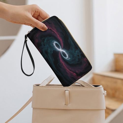 Women's Wallet Long Bifold Women's Clutch Dark Matter Tides Printed Wristlet Wallet 7.8 * 4.1 * 1.4 Inches with Wristlet