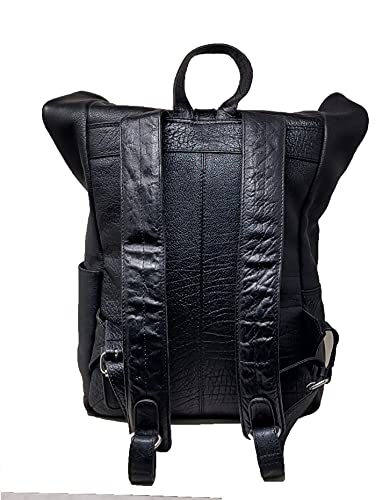 Jaald 45 cm Leather Backpack Large Messenger Backpack Cosy Bicycle Backpack Black Genuine Leather Waterproof for Travel Outdoor Hiking Gift Laptop Vintage Leather Backpack for Men Women, Schwarz 5
