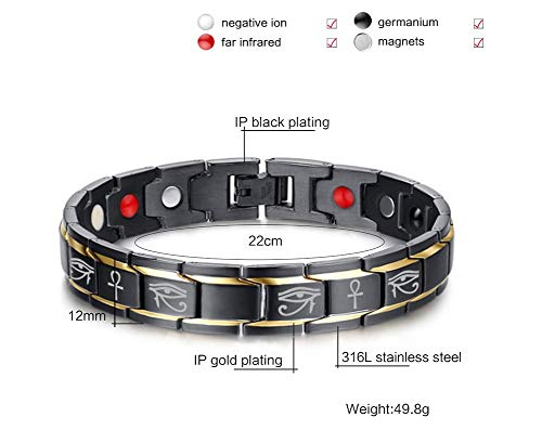 VNOX Mens Stainless Steel Egyptian Eye of Horus Eye of Ra Ankh Cross Adjustable Protection Link Bracelet Wristband Amulet Jewelry 2