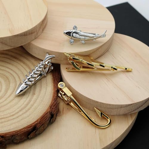 • Novelty Fishing Hook Tie Clip: Three-Dimensional Image, Fine Grinding, Excellent Quality, Unique Animal Tie Pin Set, Fishing Enthusiasts' Favorite.