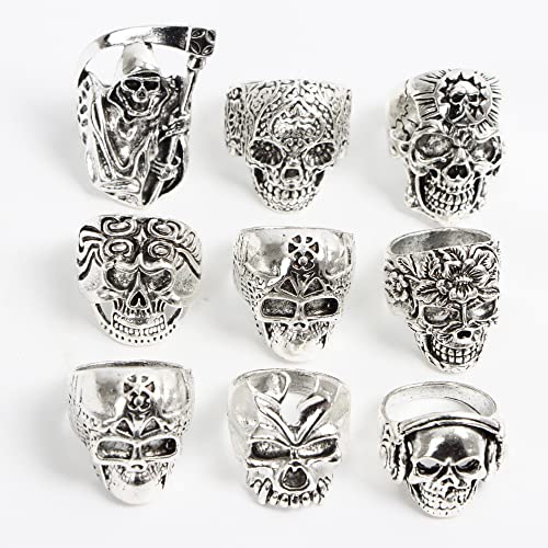 More information about Wholesale 20Pcs Punk Biker Gothic Skull Rings For Men Mix Styles Silver Color Plated Party Jewelry Accessories Gifts
