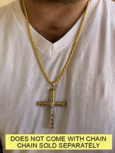 • Mens Or Ladies Cross Pendant Necklace - 4 Sizes 1"-3" 3-15 Grams - 14k Gold Plated Solid 925 Silver