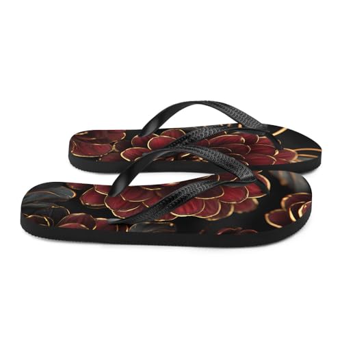 More information about Dark Red Floral Flip-Flops, Stylish Summer Beach Sandals, Comfortable Lightweight Slip-On Shoes for Casual Wear