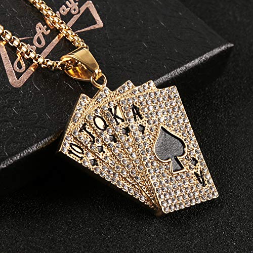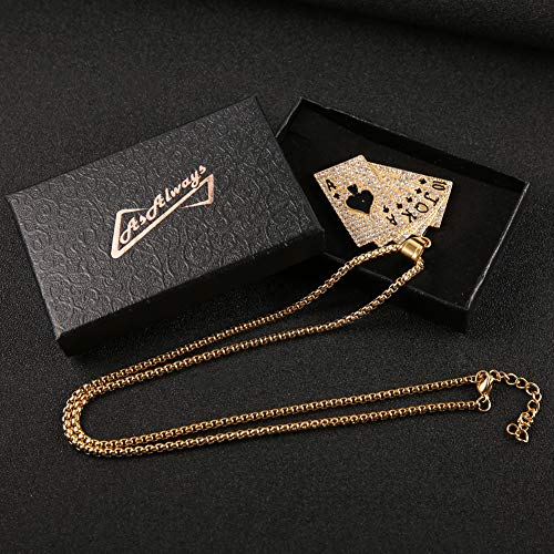 AsAlways 18K Gold Plated Playing Card Necklace for Men Stainless Steel Ace of Spade Royal Flush Necklaces Casino Bar Jewelry Gift 7