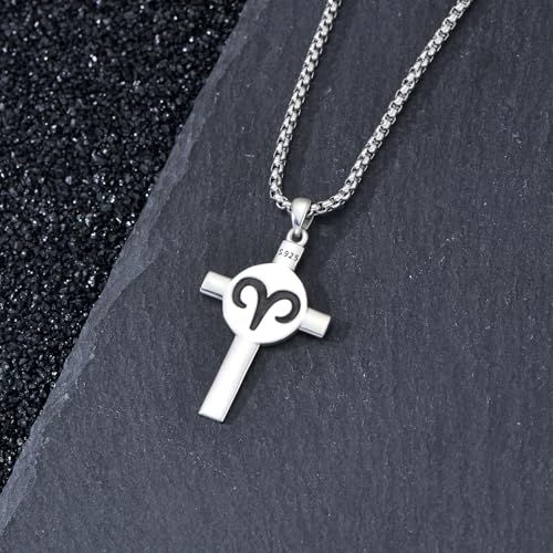 SIMONLY Zodiac Sign Necklace 925 Sterling Silver Cross Pendant 12 Constellation Necklace Astrology Jewelry Birthday Gifts for Men Women 5