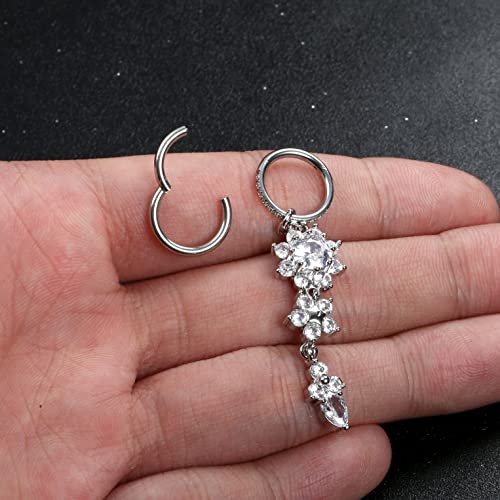 THUNARAZ 2Pcs Belly Button Rings for Women Surgical Stainless Steel Clicker Belly Rings Hoop CZ Heart Butterfly Dangle Navel Rings Belly Piercing Jewelry Silver Tone 14G
