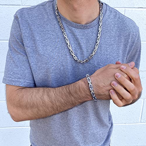 • Grab this heavy stainless steel byzantine chain bracelet and necklace set and pair it with any look