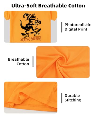 • Child-Friendly Fit: Short sleeves and a round neck provide a snug yet flexible fit, perfect for toddler boy and girl Halloween shirts aged 2-8 years, with no discomfort.