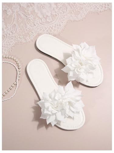 GORGLITTER Women's Flower Sandals 3D Floral Open Toe Cute Flat Slippers Dressy Summer Beach Slides 2025 3