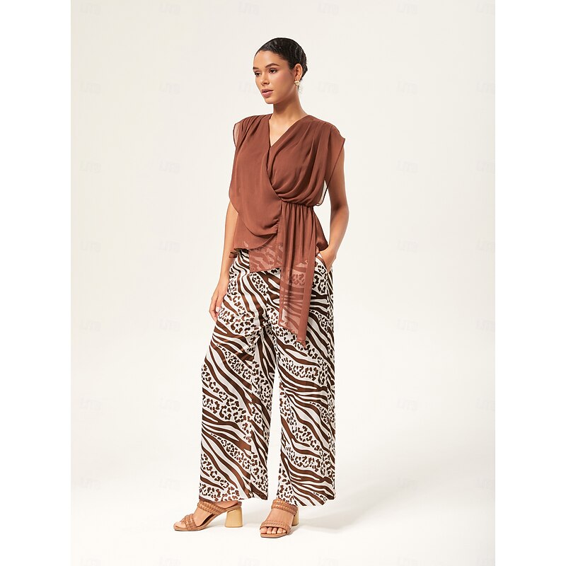 $72.99 - Elastic Waist Animal Print Wide-Leg Pants 2025. Shop for cheap Pants online? Buy at lightinthebox.com on sale today!