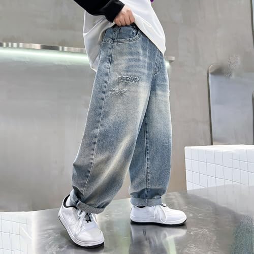 Boys Casual Loose Fit Pants for Active Play Comfortable Everyday Wear Versatile Denim Bottoms Trendy StreetStyle 6