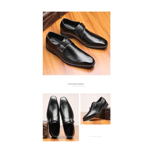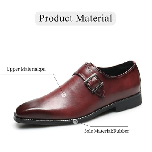 Sole material: Faux LeatherOuter material: Artificial PUClosure type: BuckleWater resistance level: Not Water Resistant【Fashion 】:Featuring finely textured leather uppers, classic pointed toe and slip on, soft leather lining, breathable and comfortable insoles and non-slip rubber soft soles, belt buckle decoration, each pair is strictly handmade by experienced craftsmen.【Comfortable】:The engineered design that fits the arch of your foot allows you to experience zero-pressure softness, the comfortable and soft lining and insole, and the lightweight structure keep your feet odor-free and dry every day, and not easy to wear out your feet.【Non-slip】:Eternal pull-on structure, stable rubber outsole, concave and convex texture are anti-slip and wear-resistant, not only have strong grip, also have good elasticity, helping you walk easily【Scenarios】:This men's leather monk strap loafers brings new fashion to the contemporary man. They allow you to mix and match your outfits for different occasions, making them an ideal choice for your daily life. Suitable for business, casual, formal wear and can also be paired with jeans and travel, shopping, driving, office, nightclub and so on【Gift】:The superior gift for your brother, boyfriend, husband or father, let them look manly in formal occasions, wedding occasions, church occasions, work occasions, business occasions and casual occasions Perfect for everyday use. top-grade materials and excellent craftsmanship ensure long-lasting durability.