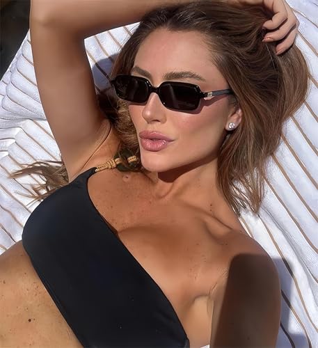 • SMALL RECTANGULAR SUNGLASSES: These women's sunglasses features a small narrow rectangular frame in a 90s and y2k style and decorates the temples with exquisite metal accessories, exuding a retro and chic vibe. You'll need these cute small sunglasses for women to create a fashionable look
