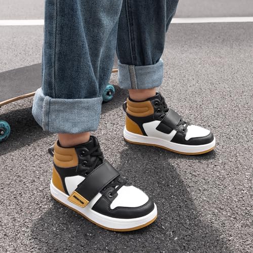• Stylish High-Top Design: With a shaft measuring approximately 3 inches, these kids’ high-top skate shoes combine style and functionality, making them a must-have for active kids.