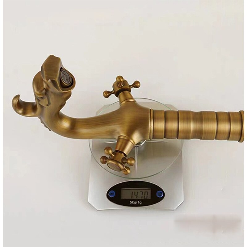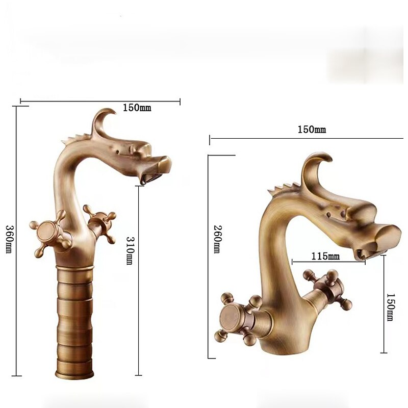 More information about Bathroom Sink Faucet for Vessel, Novelty Loong Style Dragon Shape Mount Outsides Two Handle One Hole Tall Vessel Bath Taps in Antique Brass