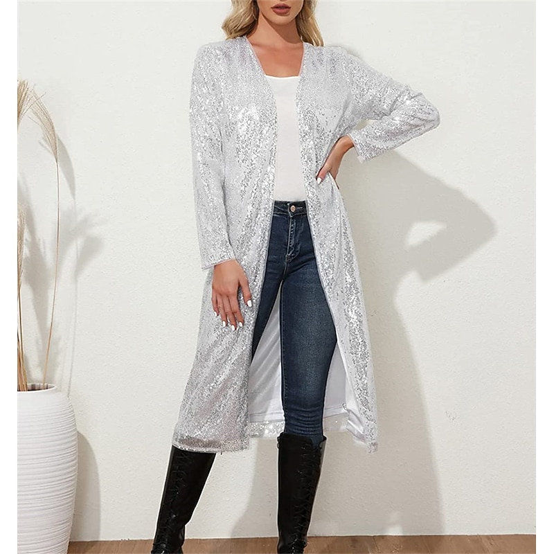 Women's Wrap Coats / Jackets Sparkle & Shine Sun Protection Long Sleeve Sequined Fall Wedding Guest Wraps With Glitter For Wedding All Seasons dress to impress 8