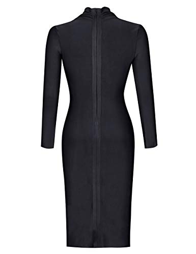 UONBOX Women's Deep Plunge V Neck Long Sleeves Draped Knee Length Bodycon Bandage Dress 6