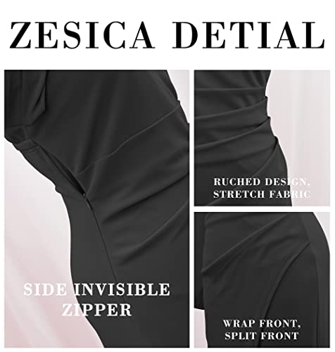 HOT ! ZESICA Women's One Shoulder Long Sleeve Cocktail Dress Sexy High Slit Ruched Bodycon Wedding Guest Maxi Dresses