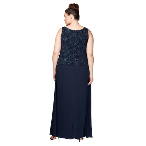HOT ! Alex Evenings Women's Long Dress with Mandarin Neckline Jacket (Regular Petite Plus)