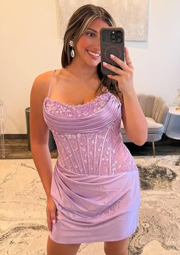 • Features: Short Satin Lace Appliques Homecoming Dresses, Spaghetti Strap Mini Prom Party Dress, Ruched Cocktail Party Gown, Tight, Corset Back, Sleeveless